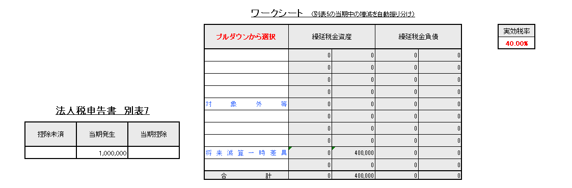 税効果会計ワークシート